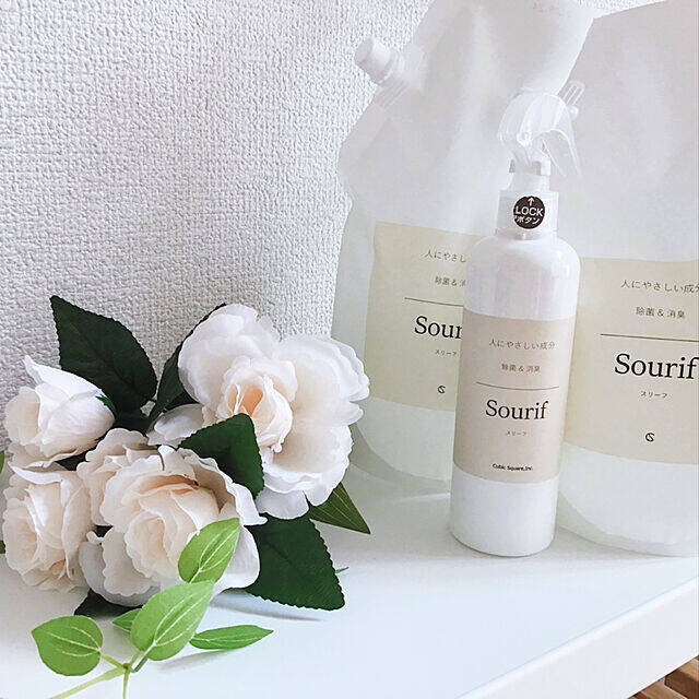 洗濯物に除菌スプレーをしているsunabaさんです。干してすぐにスプレーすることで部屋干し臭が出ないそうですよ。さっと吹きかけるだけで臭いの原因となる菌を消臭してくれて便利ですね。出したままでも気にならないシンプルなパッケージもGood♪