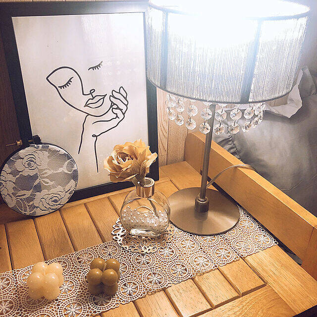 ベッドサイドの棚に韓国インテリア風雑貨をディスプレイしているnaomomさん。セリアのくすみカラーのボンボンキャンドルを二つ並べて置いていました。レーシーなマットとの相性も抜群で、ベッド周りが優しい雰囲気になりますね。