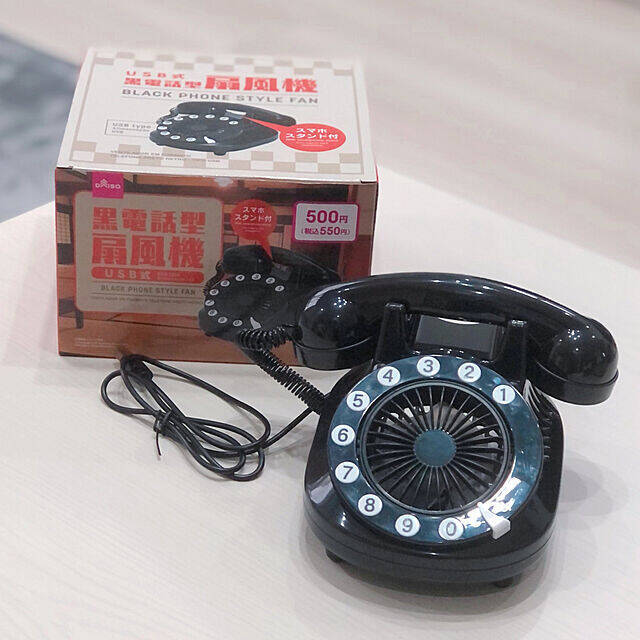 mihoさんが紹介されていたこちらのアイテム。昔懐かしい黒電話のおもちゃかと思いきや、実はダイヤル部分から風が出る黒電話型の扇風機なんです!さらに、スマホスタンドとして使用することもできるんですよ。USB式なので、電池を気にする必要がなく持ち運びやすいのもうれしいポイントです。