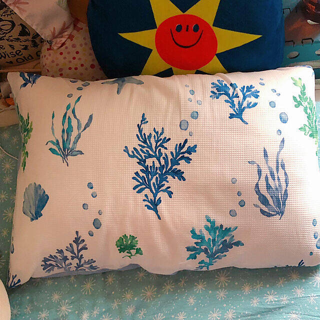 枕を新調されたMalamaさん。購入されたのは、ニトリの「ホテルスタイルまくら」標準サイズです。シンプルなデザインが◎。柔らかめで、ふんわり沈んでいく感じがお気に入りだそうです。海モチーフ柄の枕カバーもニトリでそろえられました。
