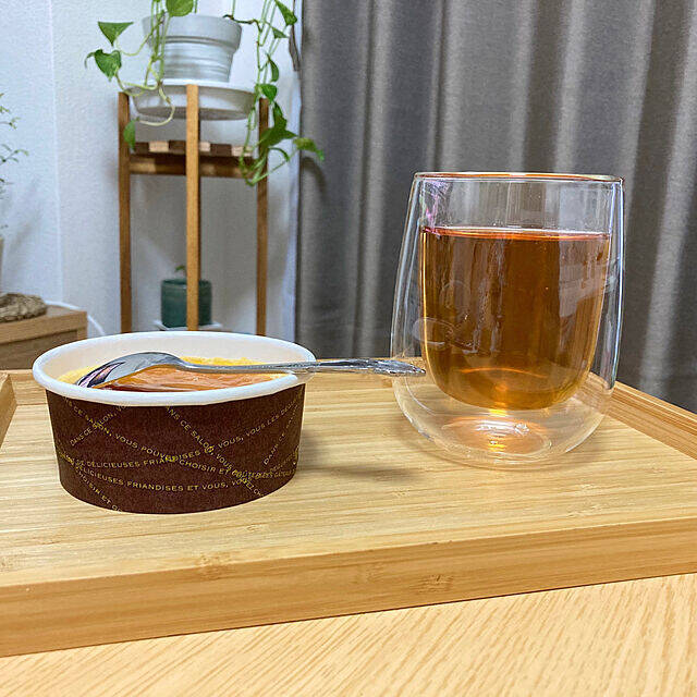ダイソーで初めて見かけたダブルウォールグラスを購入されたという、gumiさん。水出しの紅茶を入れて、おやつタイムにされています。グラスの下が広がってころんとまるいフォルムになっている、とってもキュートなデザインですね。
