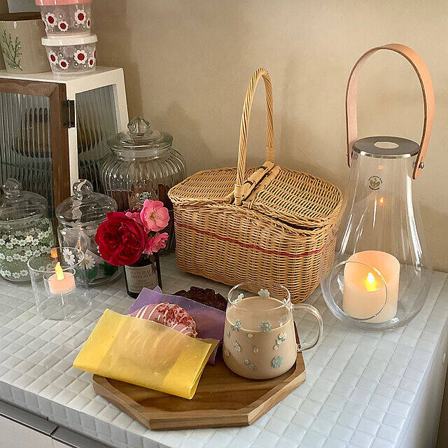 しずくのようなやさしい形が特徴の、「ホルムガード デザイン ウィズ ライト ランタン」です。透明感あふれるガラスボトルに、革のストラップがアクセントになっています。ユーザーさんはキャンドルをセットして、カフェタイムに使用。小さな灯りを眺めながら、心安らぐ時間が過ごせそうですね。