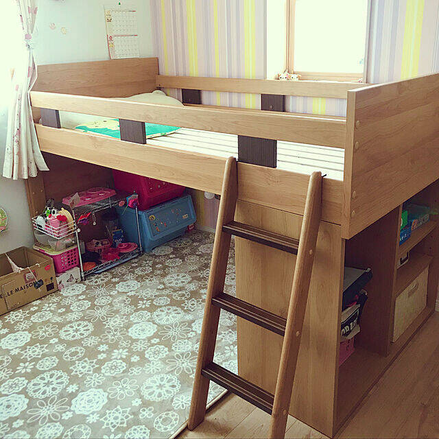 「キャスター付き収納が付いてるのも決め手でした」と、おっしゃるユーザーさんです。2段ベッドの下部に収納が付いているタイプを、購入していました。2段ベッドだけでも省スペースになりますが、さらに収納も加わって、とても便利そうです。キャスター付きで使いやすさも◎ですね。