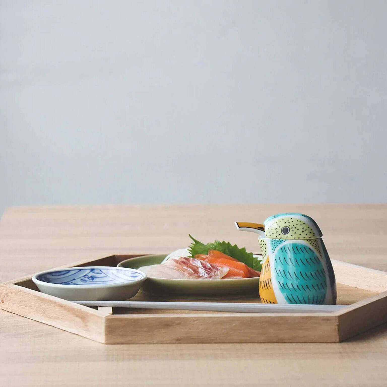 カワセミの形をした醤油さしです。見た目が可愛いだけでなく、注ぎ口が液だれしない形状となっており醤油さしとしての機能も充実しています。