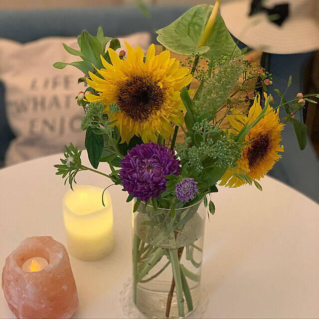 Rabbitさんが紹介されていたのは、ダイソーのガラス花瓶です。透明なガラスがシンプルながらも、お花の彩りを引き立ててくれます。また円筒型なので安定感があり、使い勝手が良いそうですよ。どんなお部屋にも馴染みやすいデザインで、お花を飾るだけでなくインテリアとしてもさりげないアクセントになりそうですね☆