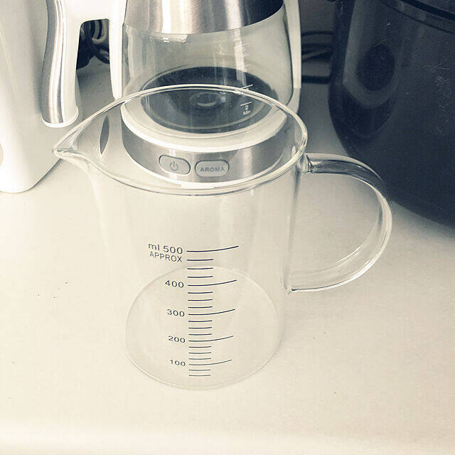 Taeさんのお気に入りは、ダイソーで購入されたガラス製の耐熱計量カップです。シンプルな見た目とガラスの透き通る質感がおしゃれですね。耐熱性のため、熱湯などを使用しても熱変形がしにくく、長く愛用できますよ。