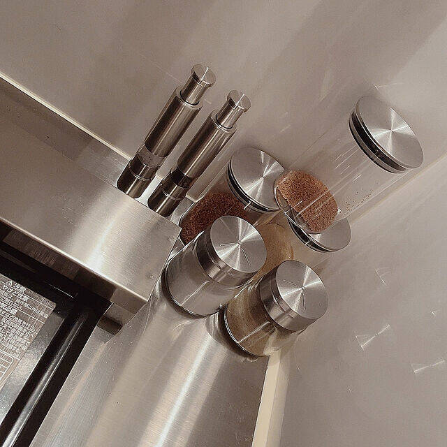 yuamamaさんが愛用されているのは、ダイソーのワンハンドスパイスミル。こちらは500円商品ですが、ボタンを押すと片手でもスパイスが簡単に挽ける便利なミルです。持ち運びやすいコンパクトなサイズ感も◎。ステンレス素材のシンプルでスタイリッシュなデザインが、キッチンをモダンな雰囲気にしてくれますよ。