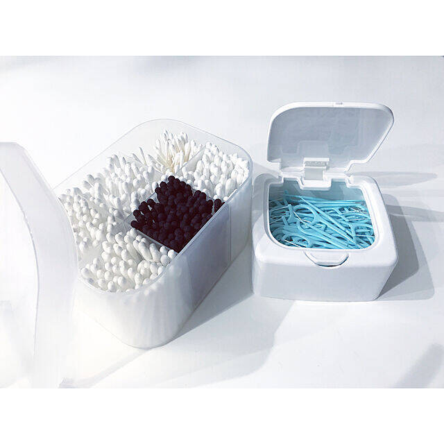 セリアのワンプッシュ小物ケースに糸ようじを収納されているMichiyoさん。指で押すだけで簡単に蓋を開けられる便利なアイテムです。