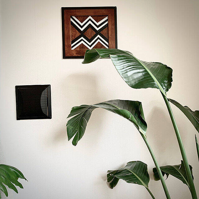 ochoriさんは、白と黒のマスキングテープを貼ってマステアートをされていました。木のベースとモノトーンカラーのギザギザ模様の組み合わせが相性抜群で、アフリカンな雰囲気に仕上がっています。このアートパネルがあるだけで、お部屋の雰囲気がグッと増しそうですね。