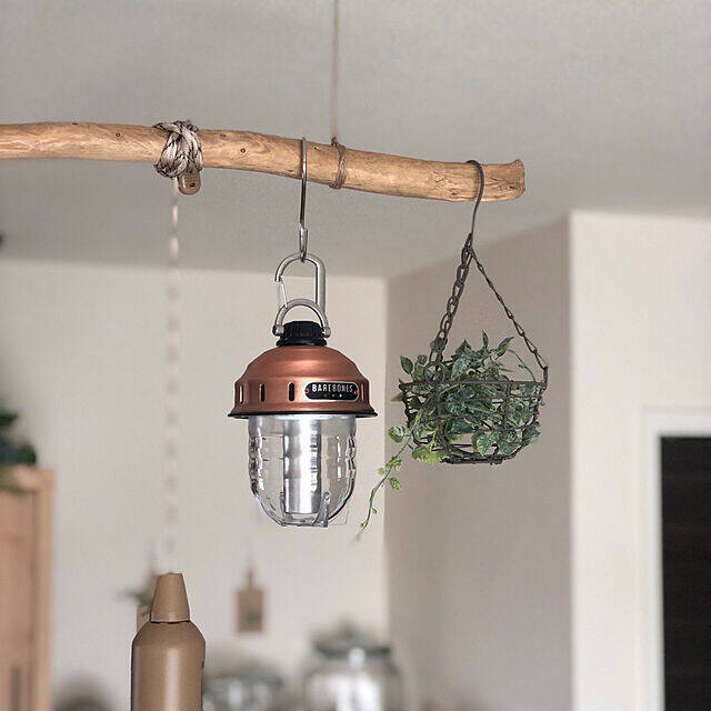 ビーコンライトLEDは充電式のため、場所を選ばず便利に使えます。付属のカラビナで吊るすことも可能で、suuu1031さんは流木に掛けてお部屋の間接照明として使われているそうですよ。レトロな雰囲気の無骨なデザインが、センスのいいインテリアを作ってくれますね。