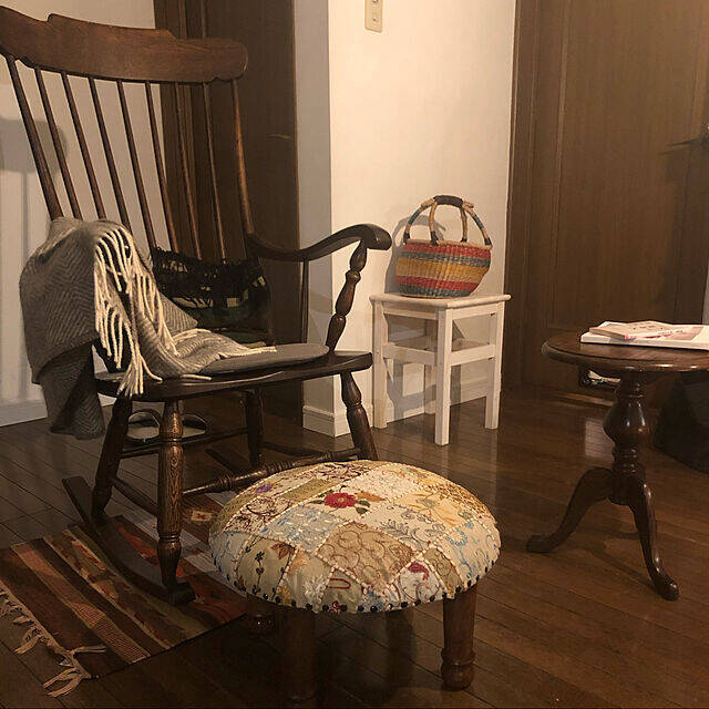 自分スペースを作っている最中だという実例です。ロッキングチェアをメインに、アンティークな風情あふれるオットマンやスツールを配し、クラシカルスタイルに仕上げています。このスペースで考えごとや読書をするそうですよ。椅子に揺られながらのんびり過ごせそうです。