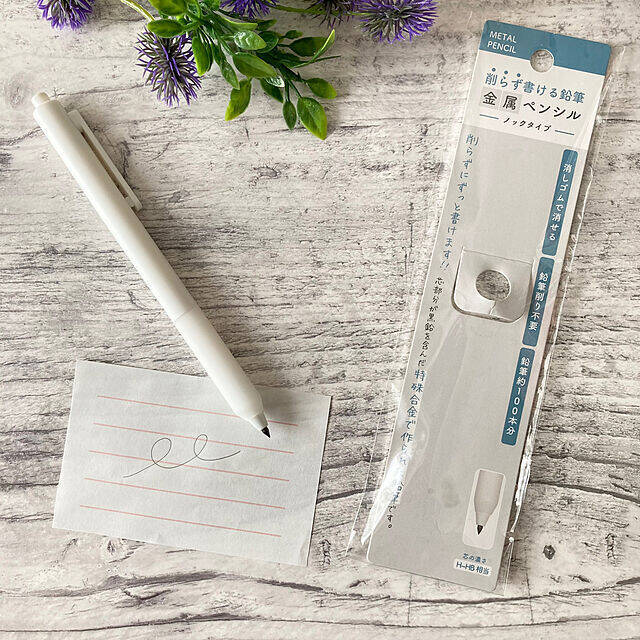 こちらは、削らずに書ける金属ペンシルです。シャープペンのように芯を補充する必要もないので、芯を入れ替えたり買い足したりも不要だそう。書き心地はシャープペンに似ていて、普通に消しゴムで消せるそうです。「 もうこれ1本あれば、 いろいろ断捨離出来ちゃうわ♪」とユーザーさんも大満足でしたよ。