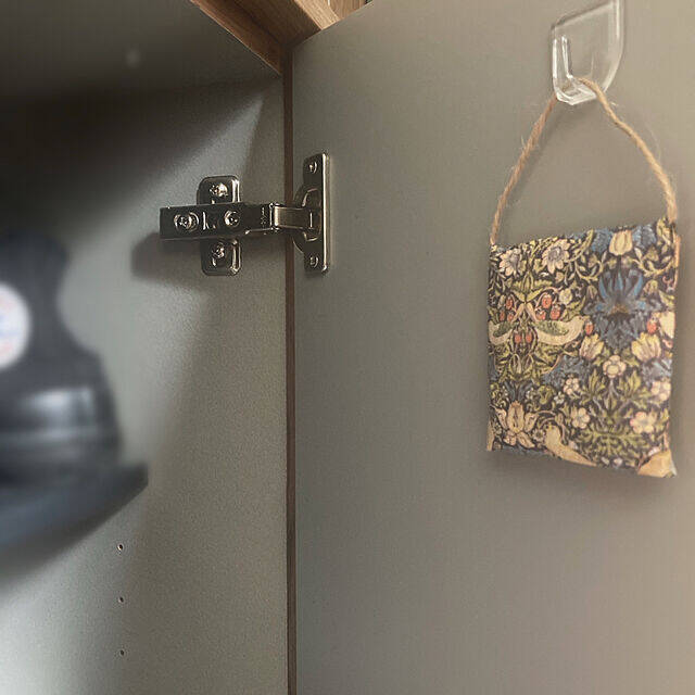 コーヒーの残りかすを靴箱の消臭に活用されていた、mommyさんの実例です。ウィリアムモリスのペーパーナフキンを利用して作られた、サシェのような可愛らしいパッケージの中に乾燥したコーヒー豆のかすを入れて使われていましたよ。フックと麻紐で扉裏に取り付ければ、靴の出し入れも邪魔しません♪