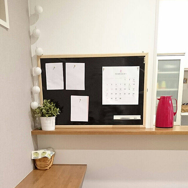 アイリスオーヤマのブラックボードを使って、プリント類を整頓しているki-さんの実例です。スマートに見えるブラックボードは、かっこいいインテリアを目指す方にもぴったりですね。白い紙類との対比で、プリントがどこにあるか分かりやすいというメリットも。カレンダーもそばに置いておくと、便利そうです。