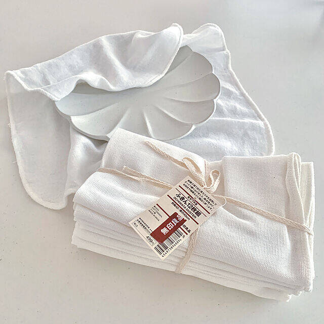 ユーザーさんは掃除用のふきんとして、無印良品の「落ちワタ混ふきん」を活用。薄くて小さいので、こまめに洗いやすく、柔らかいので拭き掃除もしやすいそうです。リーズナブルなので、雑巾代わりにも気軽に使えますね。洗いかごの代用にされているという、「インド綿大判ふきん」も便利そうです。