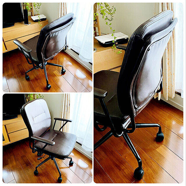 haln_clipさんはダークブラウンのワークチェアを選びました。合皮でつやつやとした質感があって、大人っぽい印象ですね。シンプルテイストなお部屋や、ヴィンテージ調のインテリアにぴったりです。