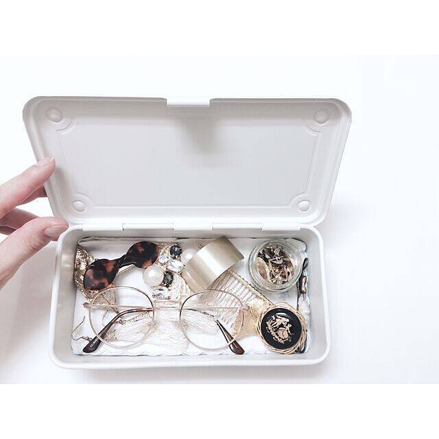 無印良品の工具箱をアクセサリー収納にしているuさん。アクセサリーをまとめることで、取り出しやすくなり、また整理整頓されて見えます。ふたを閉めれば、アクセサリーにほこりが溜まるのを防いでくれるというところも良いですね。