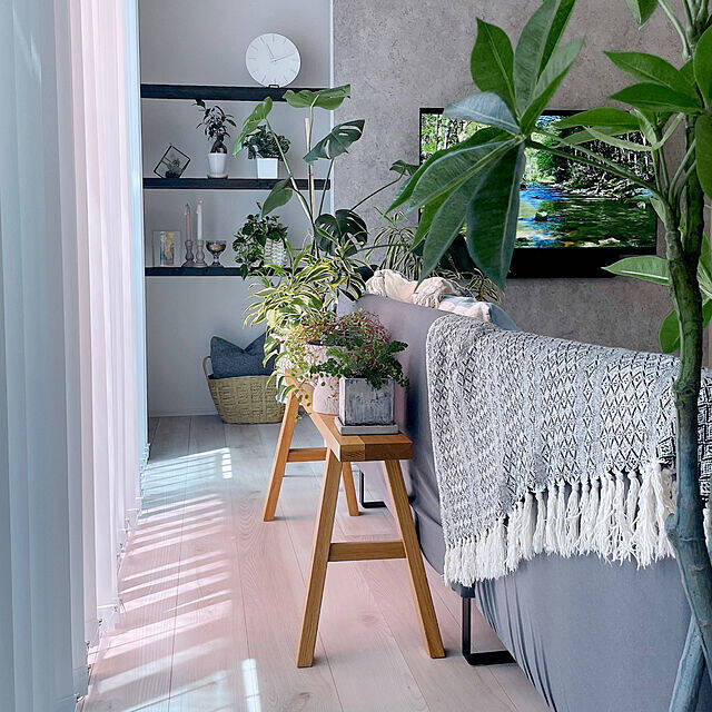こちらのユーザーさんは、木製ベンチに観葉植物をディスプレイしています。小さめの観葉植物を並べるのに、ぴったりだそうです。グリーンをお部屋に取り入れることで、明るく癒される空間になりますね。ナチュラルな木製ベンチと、グリーンとの相性が抜群です。