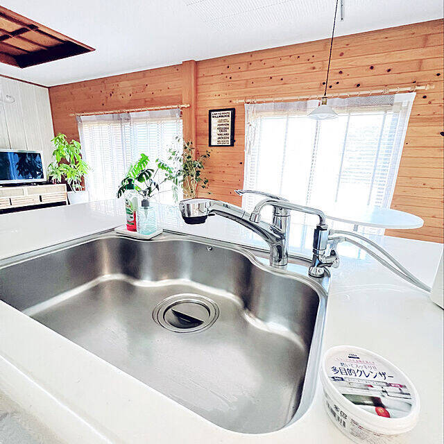 キッチンシンクの掃除に、多目的クレンザーを使用されているmamyuさん。水あかを手軽に落とせるので、水まわりの掃除にぴったりですね。また、油汚れや焦げの除去にも使用できるため、大掃除でも大活躍します。1つ用意しておくと、家中の掃除に使えますね。
