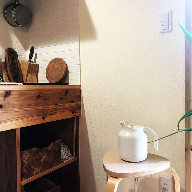 白で統一したシンプルな家電が並ぶasokosamaさんのキッチン。無印良品の炊飯器は、無駄を省いたデザインがお気に入りポイントなんだとか。まるっとしたフォルムで優しい雰囲気を醸し出し、家電が並んでいても圧迫感がありませんね。天面にしゃもじが置けるスペースが付いているのも便利そうです。