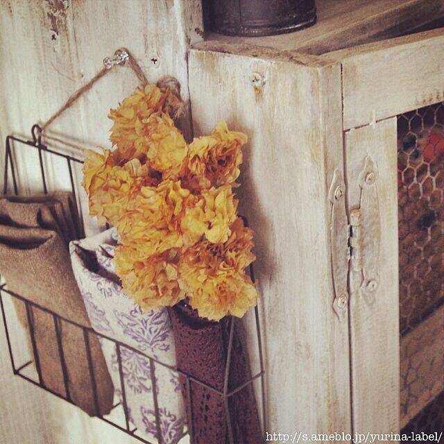 レターラックを使い、ランチョンマットを収納したのはYurinaさん。こちらはセリアのものだそう。キャビネット側面を利用し、レターラックにランチョンマットをまるめて収納されていました。手作りされた黄色のお花も、キャビネットの雰囲気と合っていてステキですね。