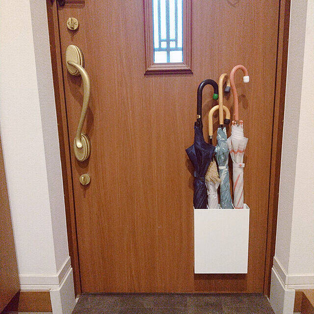 傘立てをtowerのマグネットタイプに買い替えられた、ayupoohさん。扉に設置した傘立てはしっかりとくっついて、動いたり落ちたりすることもないとのこと。浮かせる収納で玄関も広くなり、おそうじもしやすそうです。