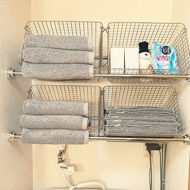 無印良品のワイヤーバスケットを、洗濯機周りの収納に活用しているのはJusさんです。実例のように突っ張り棒と組み合わせると、使いやすく、また見栄えもよくなりますね。水に強いワイヤーバスケットは、ランドリー収納にもぴったりです。