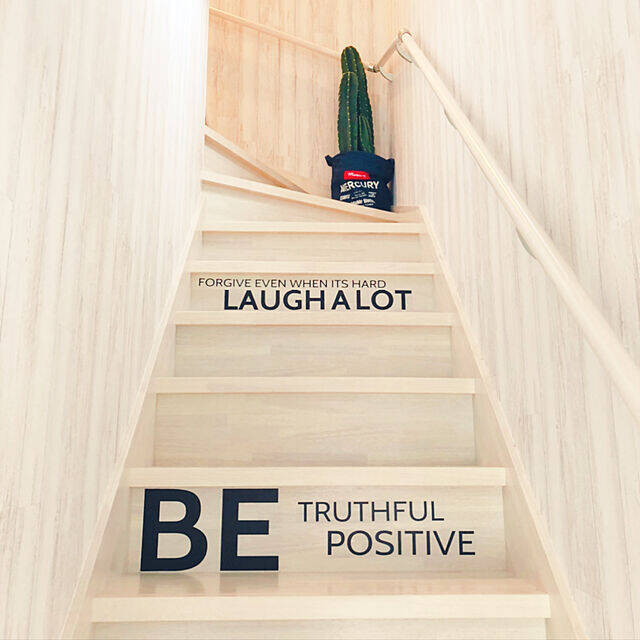 kohamakiさんは、ウォールステッカーを階段の蹴込み部分に貼られています。シンプルながらもインパクトのある英字デザインは、ポイントで2段に貼るだけでも印象的なスペースに仕上がりますね。明るい空間に英字が映え、スタイリッシュな雰囲気とメリハリを出してくれています。
