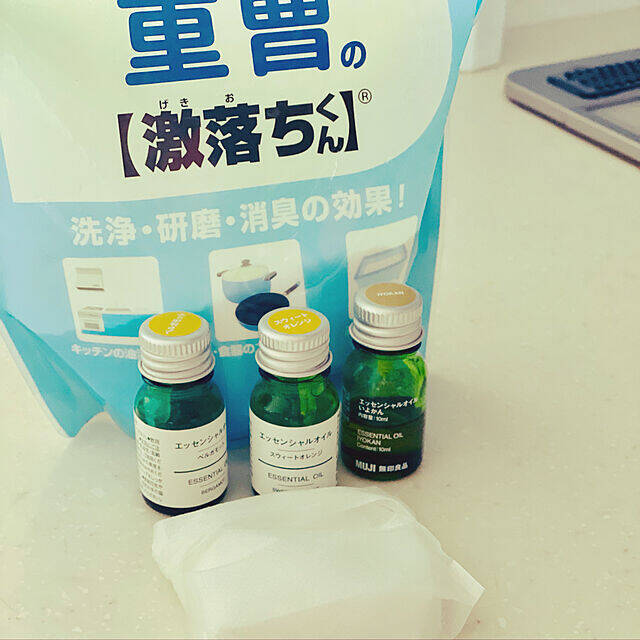 こちらのユーザーさんは、生ゴミの臭い対策に重曹やアロマオイルを使っています。まずお茶パックに重曹を入れ、さらに柑橘系のアロマオイルを垂らしてゴミ箱の底に置くそうですよ。臭いを消したうえでよりよい香りをプラスしていて、気持ちいい空気ができそうです。