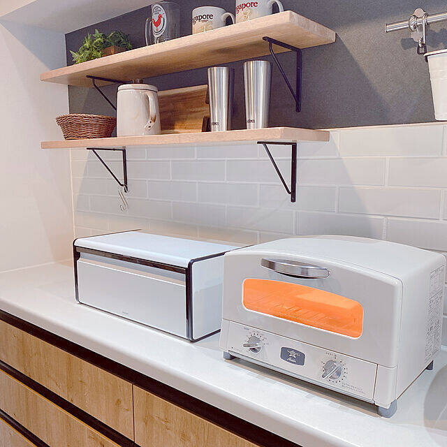 壊れたり新しい機能が必要になったりするまで、長く使うことの多いキッチン家電。テイストを選ばずに置ける、白や黒が選びやすいですよね。まずは、モノトーンのオーブントースターを使われている実例をご紹介します。