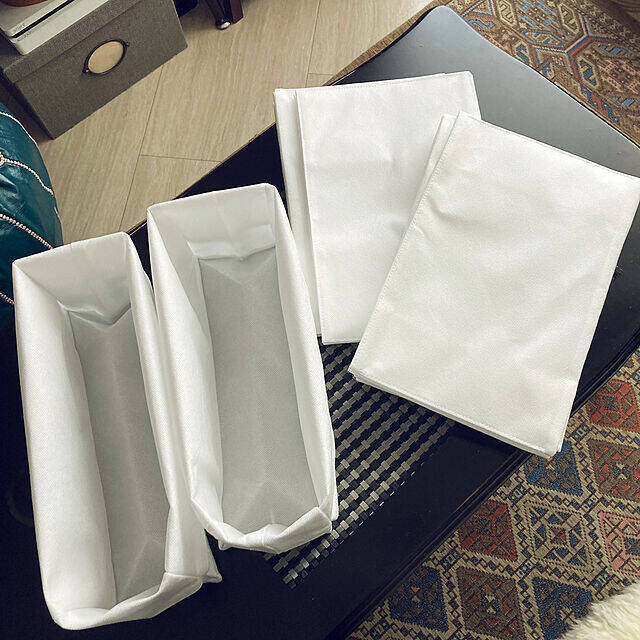 raraさんは、クローゼットの収納に無印良品の不織布仕切ケースを使用されています。上部を折って高さを変えることができるので、棚やボックスに合わせて調整できるのが便利。また、不要時にたたんで収納できるのも使いやすいポイントです。衣類はもちろん、ハンカチなどの小物類の整理にもぴったりですね。