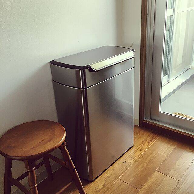 リビングにsimplehumanのゴミ箱を置かれたttoさん。上品さを感じるデザインは、どんな場所にも溶け込んでくれます。こちらは容量30L、軽く触れるだけでフタが開くタッチバータイプです。手が塞がっているときに腰などでポンと触れるだけで開閉することができとっても便利ですよ。