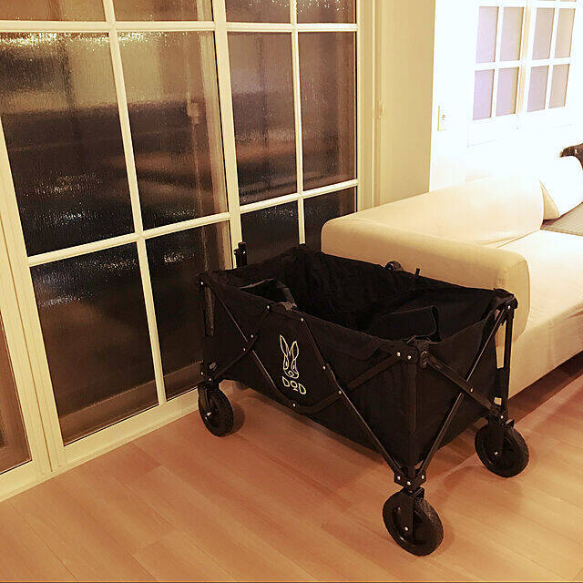 anneattokyoさんは、リビングにDODのキャリーワゴンを置いています。カバンの一時置き場として活用されているそうで、頑丈なワゴンにぴったりな使い方ですね。うさぎのブランドロゴがポイントになっているワゴンは、遊び心を感じさせつつも、モノトーンなので、お部屋にも取り入れやすそうです。