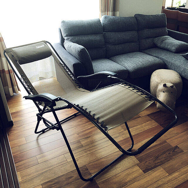 yunyumさんは、ご家族みんながお気に入りというColemanのインフィニティチェアを紹介されていました。実例のように、背もたれを後ろの方まで倒すことができ、リラックスタイムに最適だそうです。床が傷つかないクッションゴムも付いているため、おうちの中でも安心して使用することができますね。
