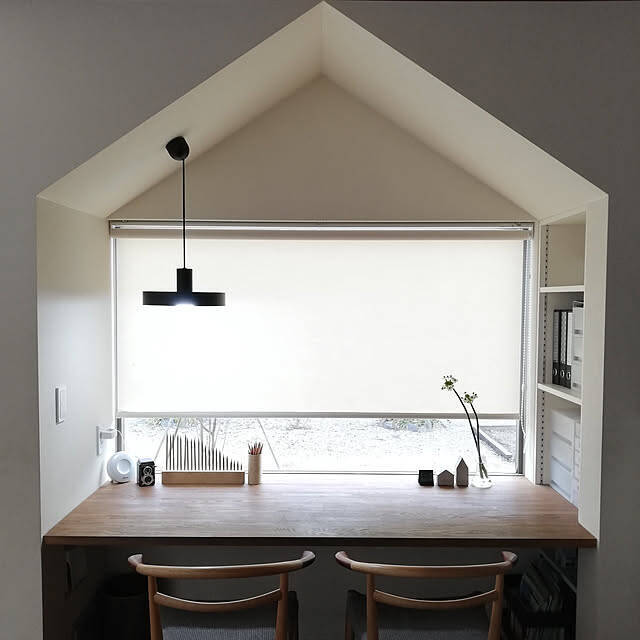 こちらは、sonaさん宅の家族みんなの書斎です。テーブルの左側には無印良品の「色鉛筆」が置かれています。大ボリュームの60色で紙管ケース入りです。木の質感がいきるデザインなので、鉛筆立てに並べても◎。長さ別にそろえた配置にも注目です。