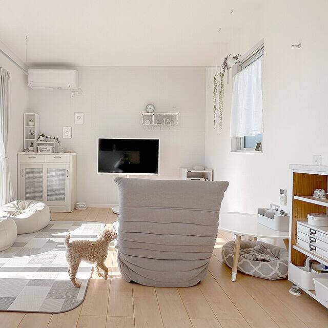 tintinさんは、地元愛媛県某所に建てた1LDKのお家で愛犬2匹と1人暮らしをされています。ほのぼのとした愛犬たちとの日常を包むインテリアは、自然光を晴れやかに受ける明るいホワイトスタイル。まどろみを誘うようなふんわりと優し気な白とナチュラルな雰囲気は、現実の喧騒をふっとかき消してくれそうです。