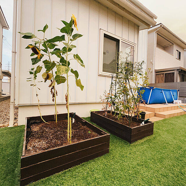 RoomClip運営チームが選んだのは、0224tさんの投稿です。広々と開放的な0224tさんの家庭菜園♪こちらは、ホームセンターで購入した木材でDIYされたスペースだそう。