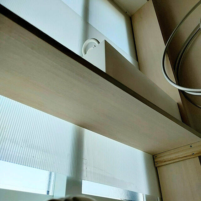 オープンラックのほこりよけにプラダンを活用されていた、ka10935さんの実例です。プラダンと組み合わせて使用されていたのは、結束バンドとつっぱり棒。開口部に合わせてカットしたプラダンに穴を開けて結束バンドを通し、さらにつっぱり棒に通すだけで簡単に作ることができますよ!