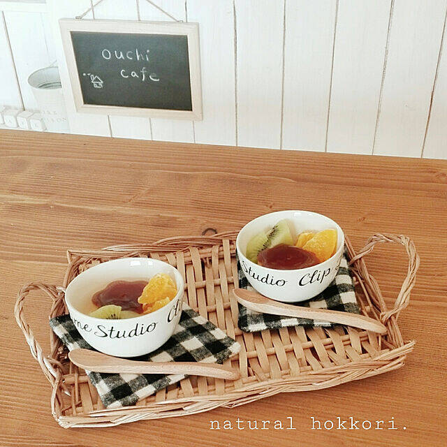 studio CLIPのロゴがデザインされているこちらのボウル。モノトーンのコースターとマッチしていて、ボウルに入れられたデザートがより一層鮮やかに見えますね。デザート以外にもサラダやスープなど、彩り豊かなメニューによく合いそうです。