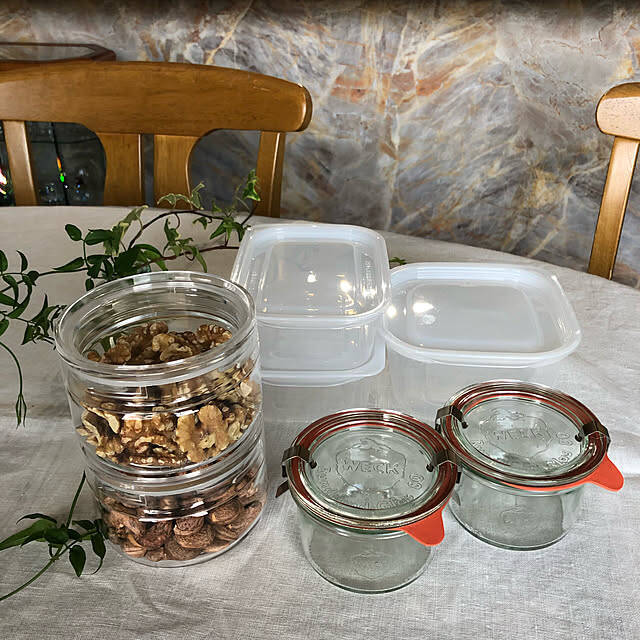 私のリピート買いアイテムは、いちご柄がトレードマークのドイツのガラスメーカーが作った、WECKのガラスキャニスターです。見た目が可愛く積み重ねも出来るし、サイズが豊富でフタの種類色々あり、普段はわんこのオヤツや冷蔵庫の中で梅干し入れたりして使っています。すごくお気に入りです♪