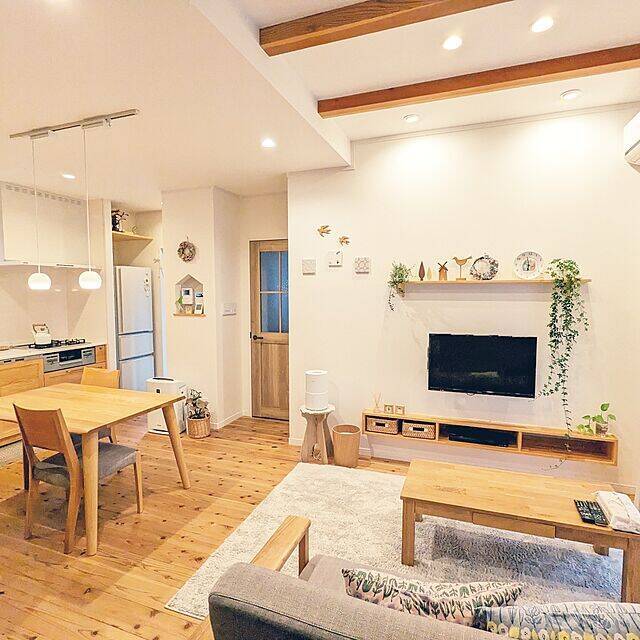 まずお届けするのは、くつろぎ感もばっちりのリビング&ダイニングスペースです。家族みんなでのんびり過ごしたり、1人の時間を満喫したりするインテリアを作ることができれば、家がもっと好きになれるはずですよ。