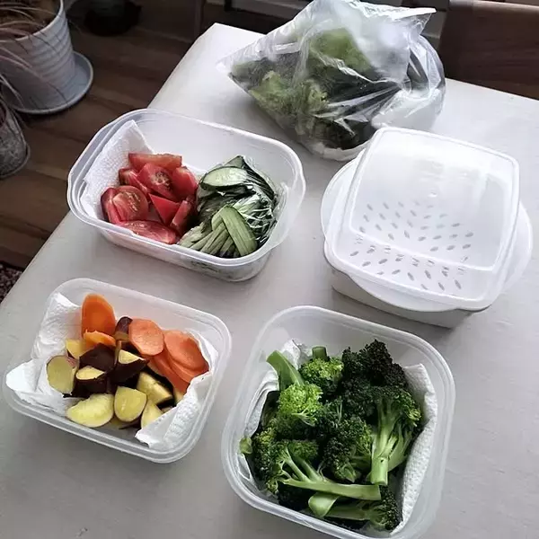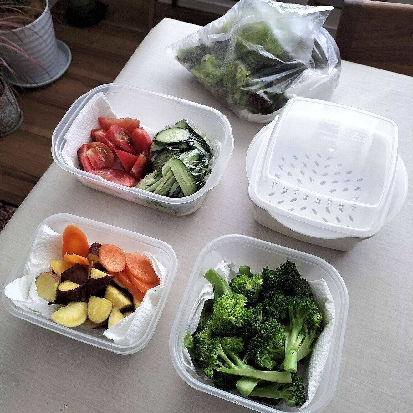 coco0.84.さん「DAISOの蒸し器です。タッパーの様になっていて一番下にお水をいれて、編み目のトレイに野菜を入れて蓋をしてレンジで加熱します。取り敢えず野菜は新鮮なうちに食べたい♪そして何より『楽』がしたい!なので私は夕飯だったり朝ご飯を作りながら調理をしています。」