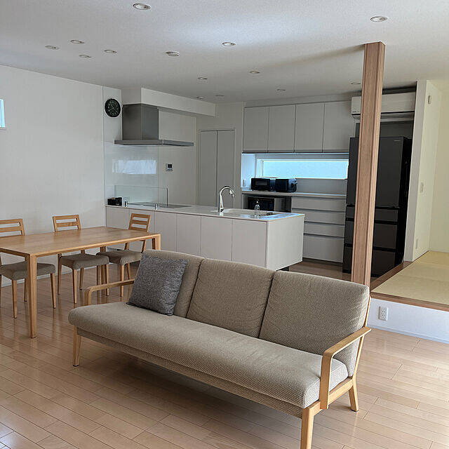 aoipisuke1010さん3人家族です。2015年に家を建てて新居に引越したときには、4tトラック2台分の荷物がありました。そこから収納家具を全て手放し、造り付けの収納庫に収まる量まで物も手放したところ、今では空っぽの収納庫まであるくらい少ない物で暮らせています。