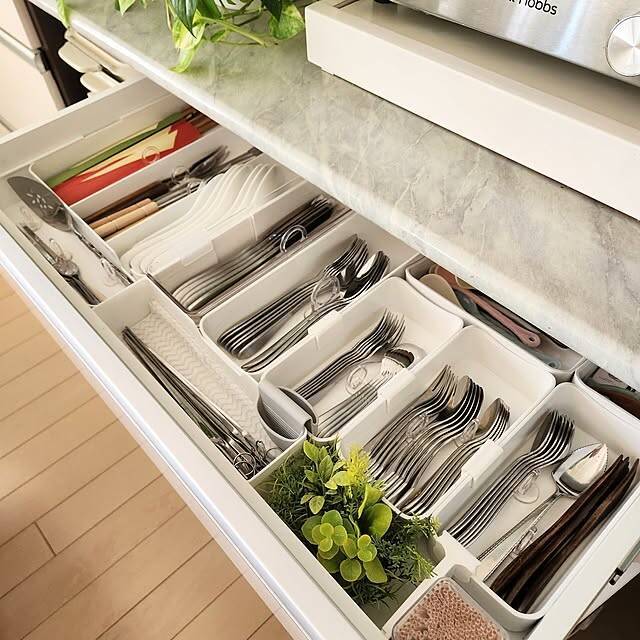 他にも、カトラリーをあっと驚く方法で収納している方がたくさんいらっしゃいます。取り出しやすさにこだわったアイデアや、デッドスペースを活用できるアイデアをご紹介するので、ぜひ参考にしてみてくださいね。