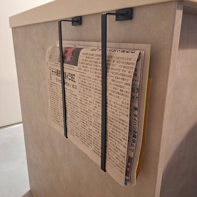 住み始めてからず~っと、新聞の置き場が決まらずダイニングの上が定位置になっていました。 ダイニングの上に物が乗っていると嫌だな~と思いながらも、良い場所が見付からず、一番ベストな場所で一番スッキリする方法を探していたら、セリアでひらめきました!ファイルボックス等も考えましたが、このアイアンバー2本使いが一番スッキリ&取り易いのでは? と設置してみました♪