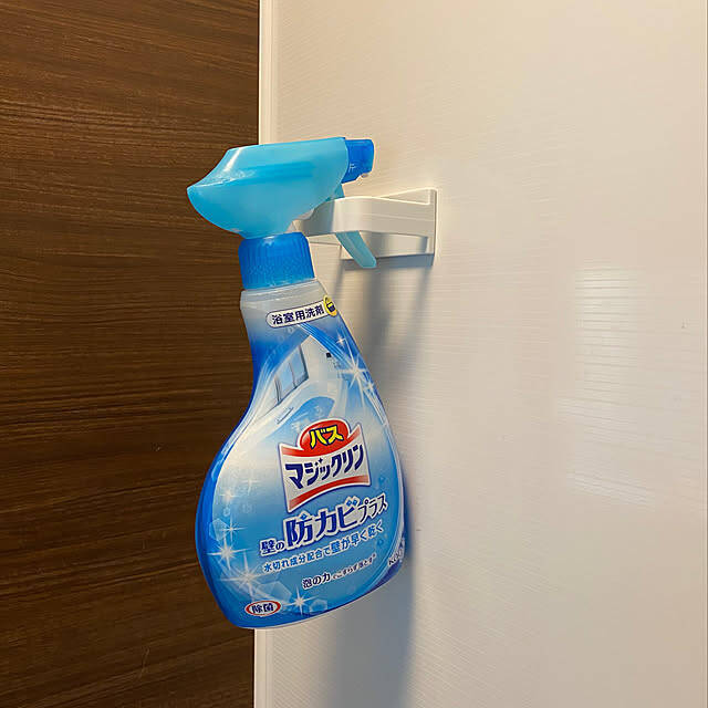 マグネット付きD型フックです♪スプレー2本掛けても落ちず幅広なのでスポンジも一緒に引っ掛けることができます。マグネットだと壁を掃除するときもすぐに取り外せて清潔便利ですね!