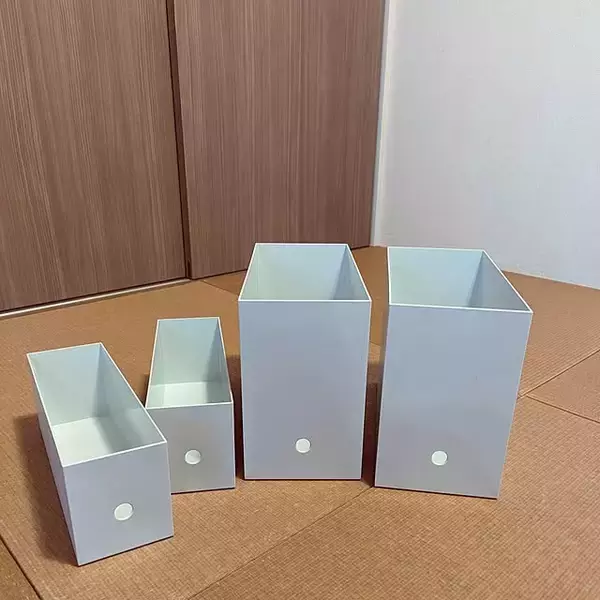 mamiさん「ファイルボックスとして教科書や説明書を入れるのはもちろん、子どもたちのおもちゃを入れたり……いろんな使い方ができるし、買い足しもしやすいので我が家では家中で使ってます♪サイズや蓋をつけたり収納するものに合わせて自分で選べるのも嬉しいポイント!」