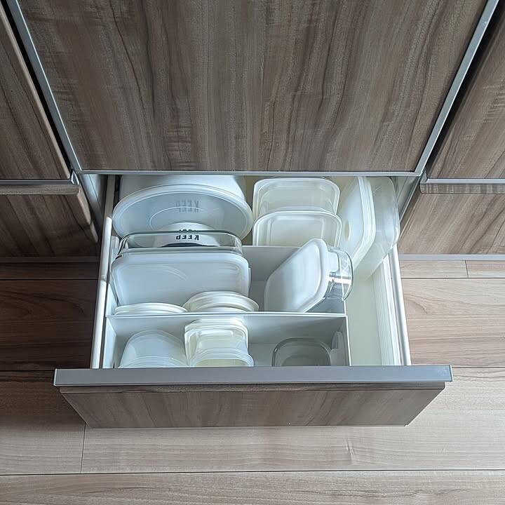 「保存容器を分けて収納するのに使ってます♪引き出しの中を分けてるのでバラバラにならなくて片付けやすいです!」