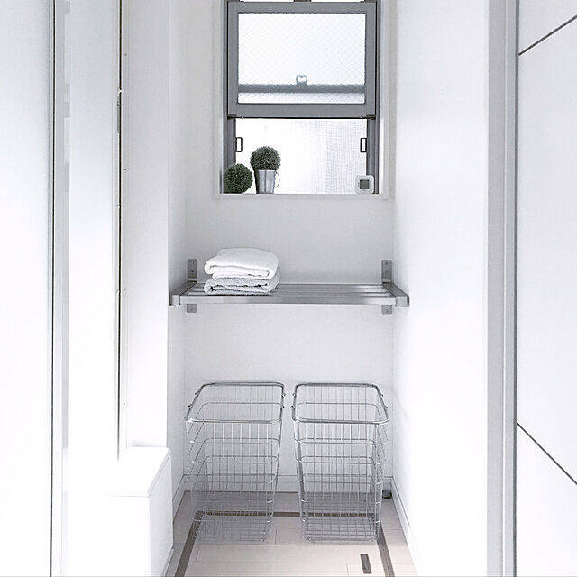 始めにご紹介するのは、ワイヤー製の洗濯かごです。通気性が良く、スッキリとしたデザインです。harmaaさんのランドリーコーナーには、ステンレスのワイヤーかごが置かれています。上部に設置されたタオルラックと素材が統一され、清潔感がありとってもスタイリッシュですね。