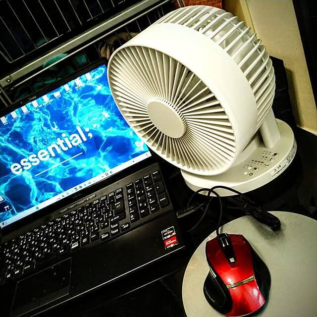 360度首振り機能付きサーキュレーターはコンパクトなので、YASUさんのように机やスツールなどの上に置いて使いたい方におすすめ。作業中に顔や体の近くに風を送りたい方や、ペットがいて床にものを置けない方にぴったりですね。音が45dB未満と静音に設計されているので、ワークスペースに取り入れやすいのも◎。